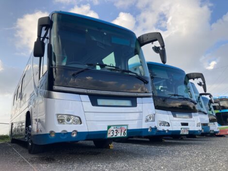 一部区間のモノレールを除いて電車がない沖縄では、団体旅行や企業研修で大人数が移動するときに、貸切バスが重要な交通手段となっています。