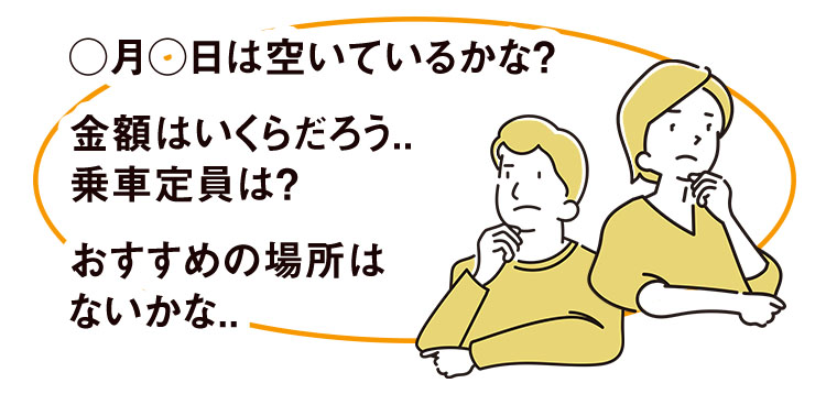 「○月○日は空いているかな?」「料金はいくらだろう?」「おすすめの場所はどこ?」